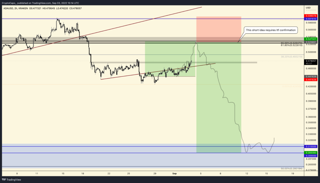 کرپٹو اسٹریٹجسٹ ساتھی سمارٹ کنٹریکٹ پروٹوکول کارڈانو پر بھی نظر رکھے ہوئے ہے۔ کیپو کے مطابق، ADA اپنی ترچھی مزاحمت سے باہر ہو گیا ہے اور اب ایسا لگتا ہے کہ وہ $0.52 پر اپنے ہدف کی طرف جا رہا ہے۔