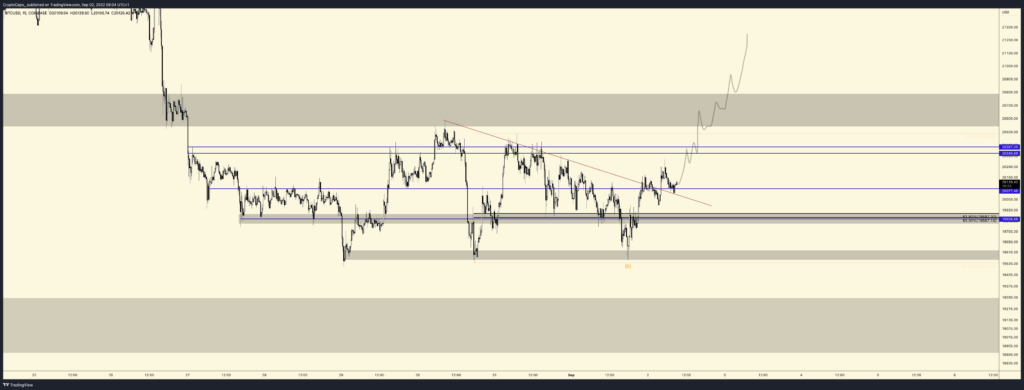 “مین بیئرش ٹرینڈ لائن ٹوٹ گئی۔ مختصر نچوڑ کے لیے تیزی کی تصدیق $20,700-$20,800 مزاحمت کا وقفہ ہوگی۔ اس کے بعد، ہمیں $22,500-$23,000 دیکھنا چاہیے۔ شارٹ سکوز آئیڈیا کے لیے باطل: $19,500 کا وقفہ اور اہم تصدیق $19,000 کا کلین بریک ہوگی۔